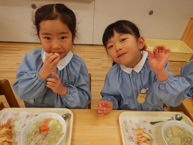おいしいパンが完成すると、幼稚園中にいい匂いが…!