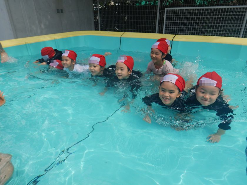 2024.07.03 年長組☆プールに入りました! 全学年共通 一週間ほど前から「今日も雨だね」と言いながら、プールに入るのを楽しみに待っていた子ども達。 今日は、快晴!気温も高く、プール日和となりました♪ 「きもちい~!」「冷たいね!」と言いながら楽しんでいました☆ みんなが大好きな滑り台も、大盛り上がり!! シューっと滑ったり、滑った後に潜ったり。 イエーイとピースする子もいましたよ!! 今年初めてのプール、とっても楽しかったですね! またみんなで一緒に入りましょうね♪ ギャラリー
