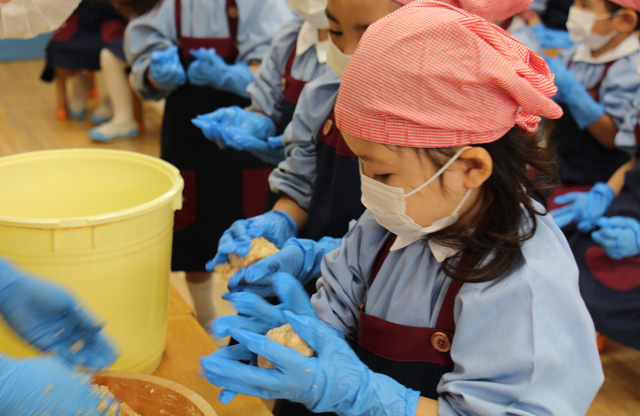 説明をしてもらい、大豆と麹と種水を混ぜ