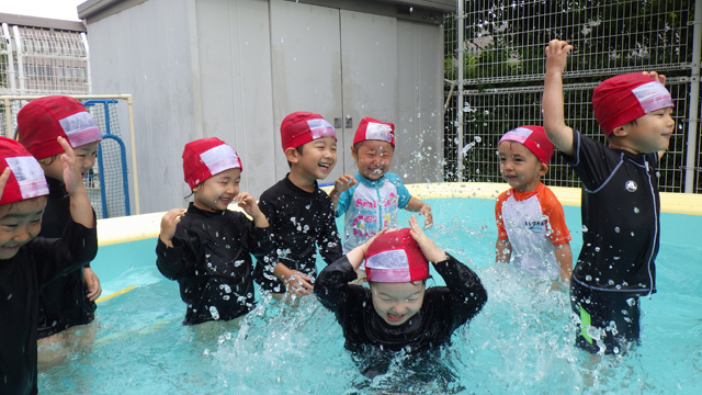 2018.07.27 年少組♪たのしいみずあそび♪ 全学年共通 1学期、子ども達はお水あそびを大いに楽しみ夏を満喫しました♪お友達や先生と一緒に遊ぶと楽しさは2倍、3倍に膨らみます!水と仲良しになり、お水遊びが大好きになった子ども達。夏休みもたくさんのお水あそびを楽しんでくださいね(*^-^*) ギャラリー
