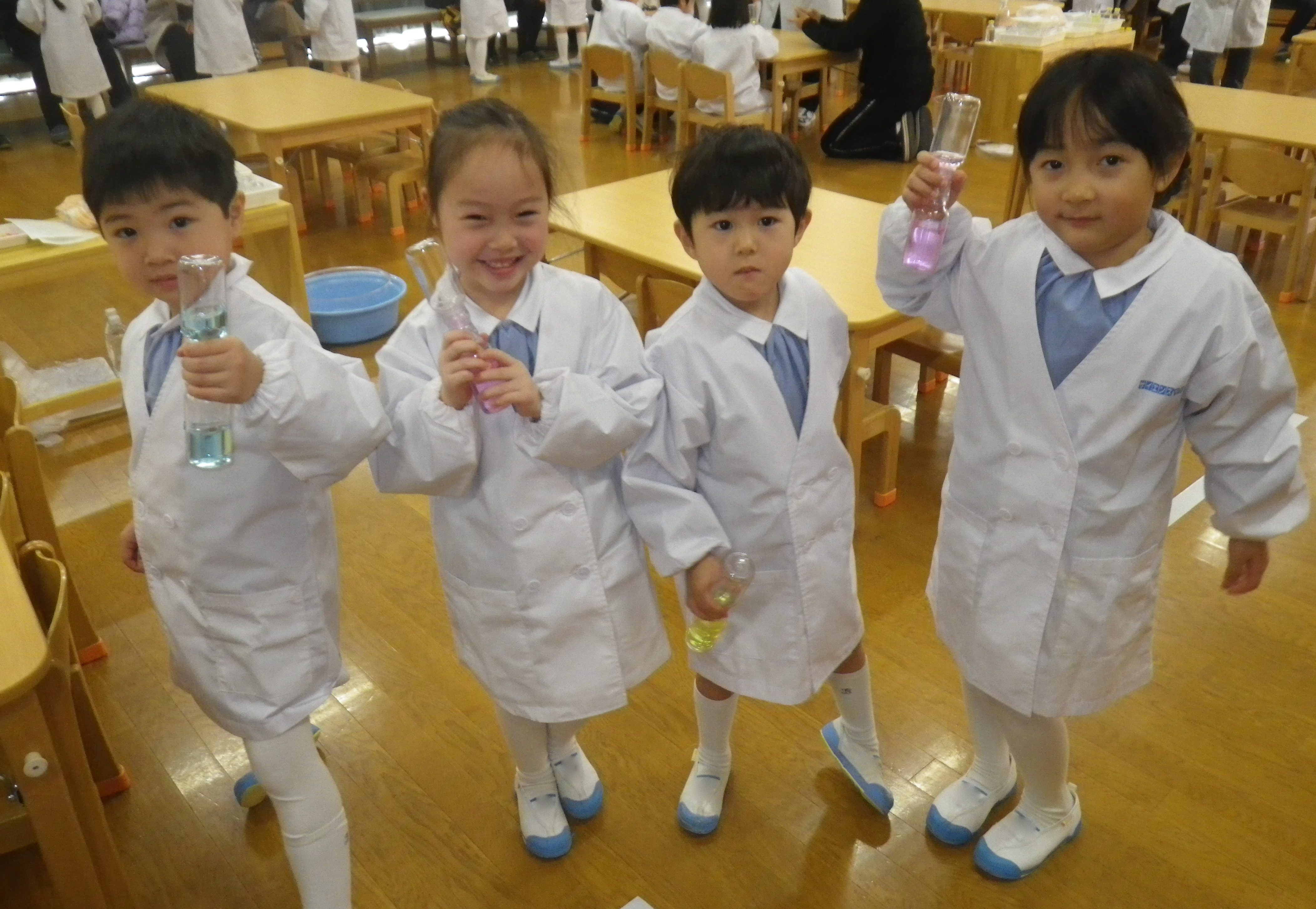保育室で白衣を着て・・・ちびっこ博士に変身です(*^_^*)