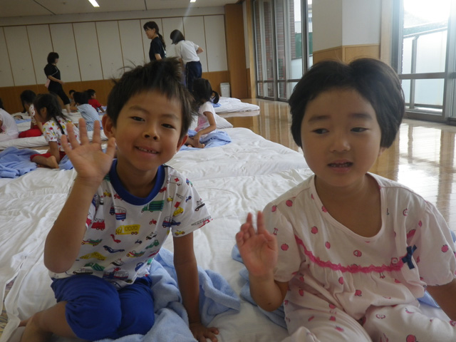 2017.07.26 グッドモーニングー! 全学年共通 予定とおり、6時30分に起床しました! 「どんな夢を見たの?」 「昨日のおばけ・・・。」 昨夜、どんなおばけ? が子どもたちの前に現れたのでしょう? いろんな夢を見たようですが、しっかりと眠りましたよ。 ギャラリー