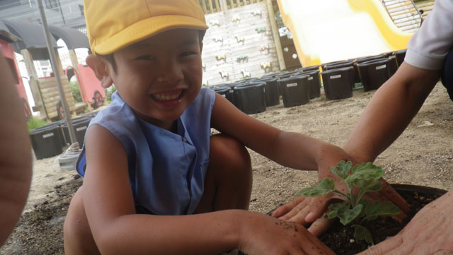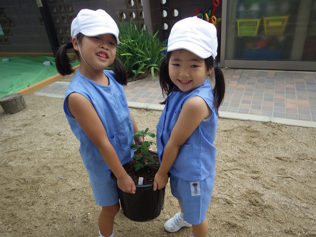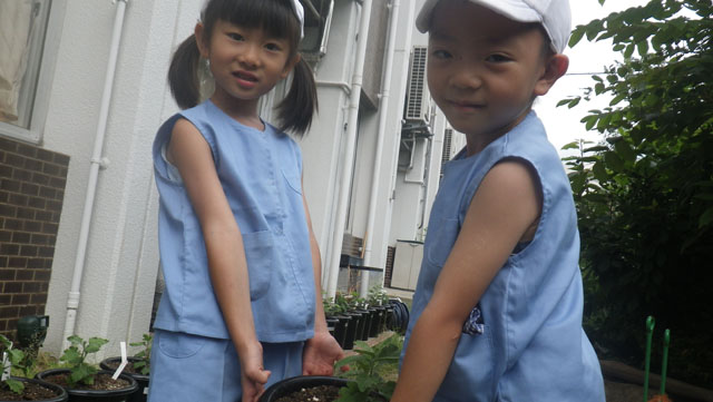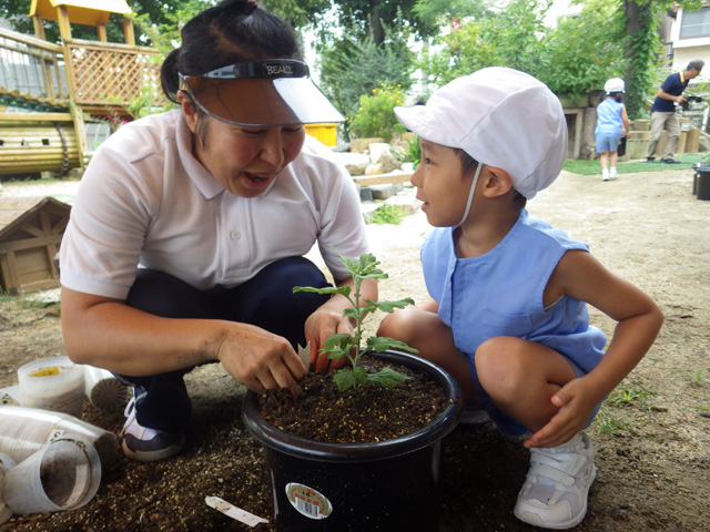 2016.07.26 菊の植え替え☆ 全学年共通 小さなポットだと少し窮屈そうになってきた菊を大きな植木鉢に植え替えることになりました♪これもトマリーナからのミッションなのです!!今後の生長が楽しみですよ☆ミッションをクリアしてコインをゲットしました。やったー!! ギャラリー