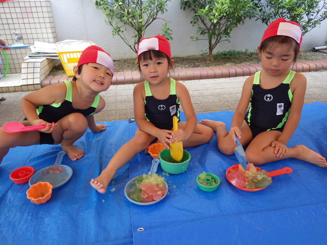 2015.08.31 ☆ハリネズミ☆ 全学年共通 夏休み最終日、みなさんどのように過ごされていますか? 夏休み中のハリネズミの水あそびを一部ご紹介します。 この日は寒天を使っておままごとをして遊びました。触ると気持ちがいいし、切るときの感覚も気持ちがいい♪たくさんのごちそうを作ってくれましたよ(*^_^*) さあ!明日から2学期がスタートです。元気なニコニコ笑顔で登園してきてくださいね♪みんなに会えるのを楽しみに待ってますよ\(^o^)/ ギャラリー