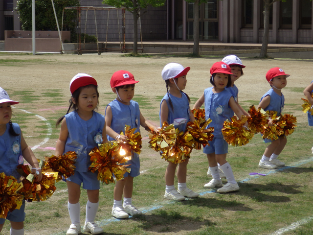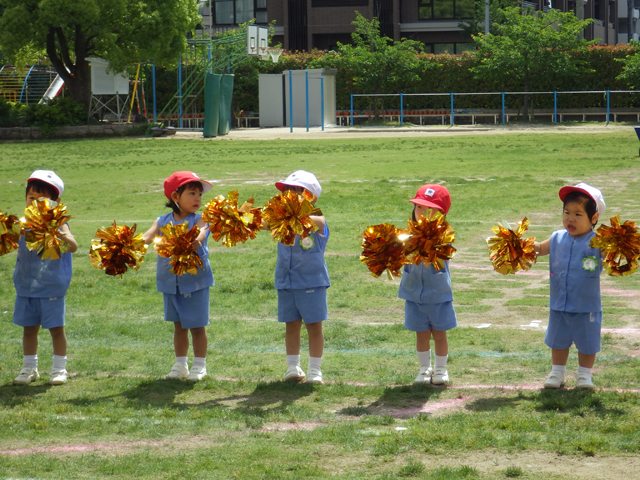 2015.05.25 年少組も頑張っています♪ 全学年共通 年少組はポンポンを持ってダンスに挑戦です。グランド練習にも少しずつ慣れ、毎日ポンポンをキラキラさせながら一生懸命に頑張っていますよ。 どんなダンスかはお楽しみに~♪運動会当日まで子ども達を励ましてあげて欲しいと思います。 年少組~ファイト~(^O^)/ ギャラリー