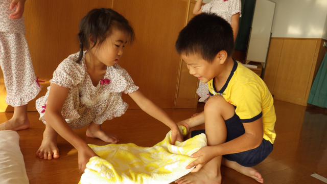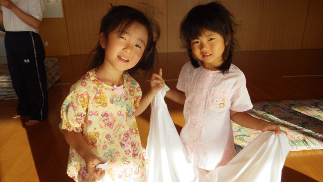 みんなで協力して、シーツもタオルケットも敷き布団もピッチーーーーッとおたたみしました。