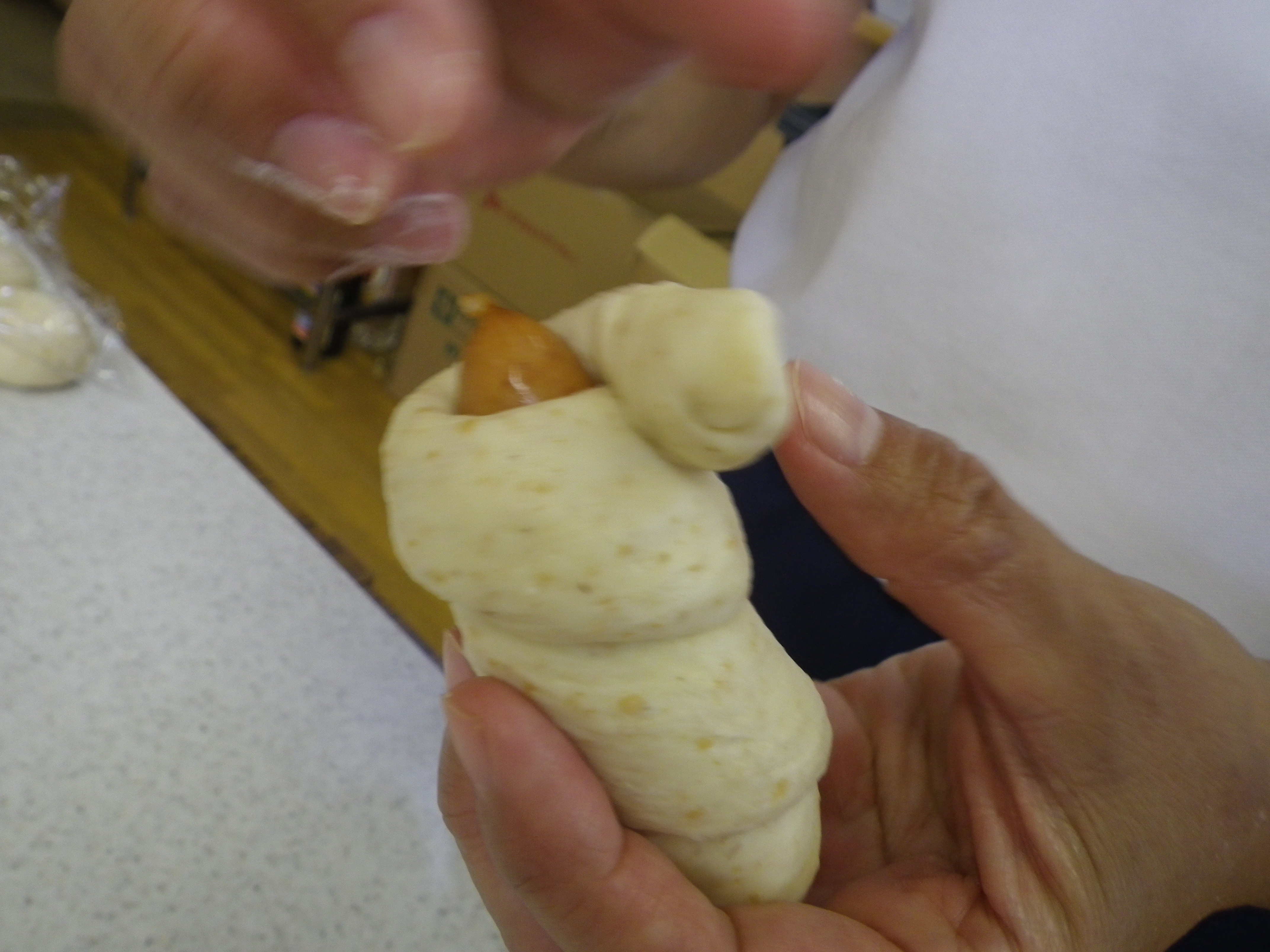 明日はコロッケクッキング。 その準備…玉ねぎカットやひき肉炒め、調理器具準備やらでバタバタしていますと、青空パン工房の店主がさささのさ~っとウィンナーロールパンを作ってくれました。 教員みんな連続3個一気食べ!!でした。 パン教室に参加された年長組の保護者の皆さんは、この美味しさ、わかってくださいますよね。 年中・年少組の保護者の皆様、年長に進級されましたら、是非、ご参加くださいね。このパン教室、本当にすごいですから。 さ、子ども達よ!明日はお昼ご飯を自分達で作るのだよ。 みんなで頑張って作ろうね。