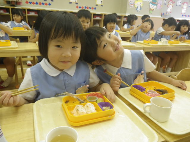 年中組では夏休みの宿題として、食事中のマナーを身につけること、お箸の扱いが上手になることを目標に頑張ってきました!9月に入り子どもたちの食事中の様子を見てびっくり!!自分でお箸の持ち方を意識して持ったり、姿勢が崩れてきても自分で直したり、食器に手を添えることも身についてきました。今日で9月もおしまい。今までの成果を発揮する時がきました!お箸検定に挑戦です☆自分でお箸の持ち方を確認し、みんなで育てた大豆を隣のお皿までお箸で運びました。なかなかつかむことができなくてもあきらめず、根気強く最後まで取り組むことができました。すごい!!検定後には頑張ったことを表して証明証を発行しました。みんなとってもうれしそうだったね!これからも継続していきましょうね☆