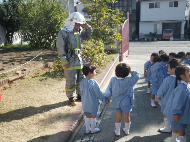 2012.11.02 避難訓練 全学年共通 本日、避難訓練が行われました。 消防士さんに来ていただき本格的におこなわれました。 サイレンから避難まで、『おさない・かけない・しゃべらない』をしっかりと守り行動することが出来ました。 素晴らしかったですよ。 消防士さんからお話も聞き、なんと消防車も見せていただきました!! 普段間近で見ることのない消防車。かっこよかったですね!! いつ、火災がおきるかわかりません。 今日の練習をしっかり頭に入れて日々を過ごしましょう。 …でも、火の元には充分注意しましょうね!! ギャラリー