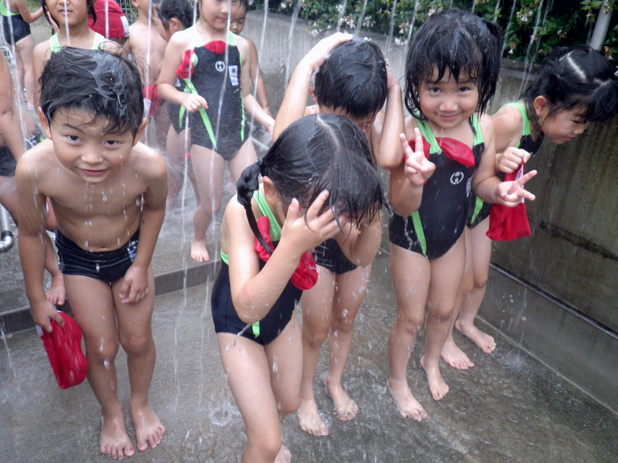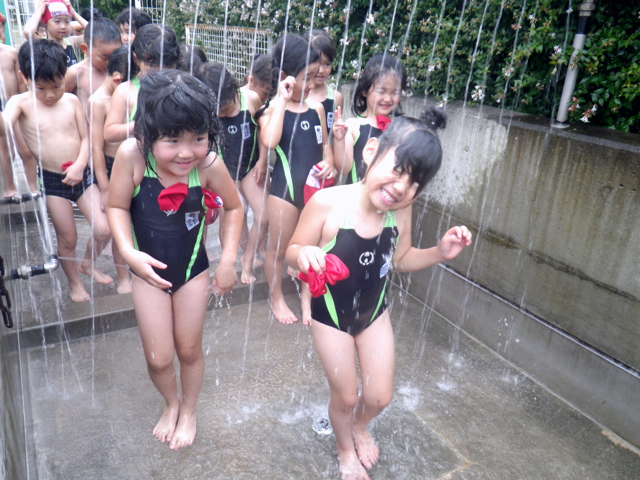 2012.07.13 シャボンを洗い流そう! 全学年共通 シャボン玉あそび終えた子どもたちは プールに入って泡ブクブクもすっきりです。 2日前の天気予報とは大違い。今日は お天気に恵まれましたね。 よかったよかった。 年長組の先生方も この日のためにどれだけ準備をしたことか。 雨で流れるのは 悲しすぎます・・・。 天の神様がその様子を見ていたのでしょうね。 これは、ご褒美のお天気だと 私は思いますよ。 ギャラリー