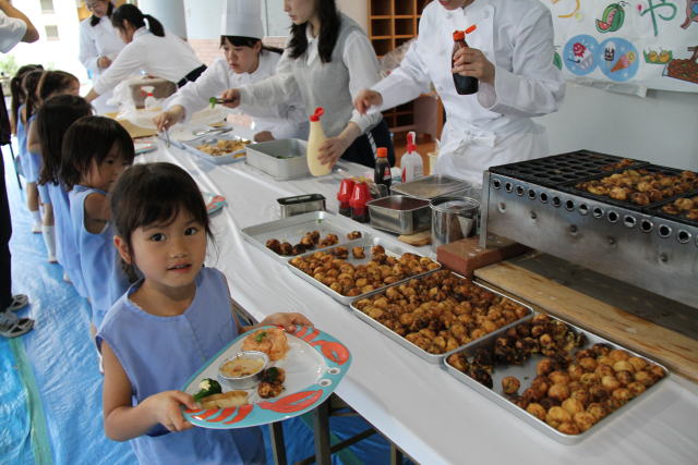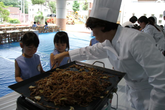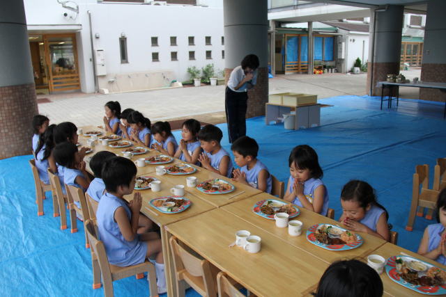 2012.07.12 ☆野外レストラン☆ 全学年共通 子どもたちがとても楽しみにしていた野外レストラン!!焼きそば、たこ焼き、ハンバーグ、焼肉などおいしそうなメニューがたくさんです。みんなでなかよく、お腹いっぱい食べましょうね。「おかわりするぞ!!」と、みんなはりきっていますよ。 ギャラリー
