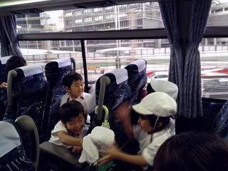 2012.07.12 おとまり保育 パート2 全学年共通 王子動物園まで あと少し!! バスの中でも 「バスレク」を楽しんでしますよ! しりとりや帽子運びリレーなどなど。 ブログをアップする私は子どもの様子とは違い、乗り物酔い。 ちょっと 気持ちわ悪い(;0;) がんばるぞ!! ギャラリー