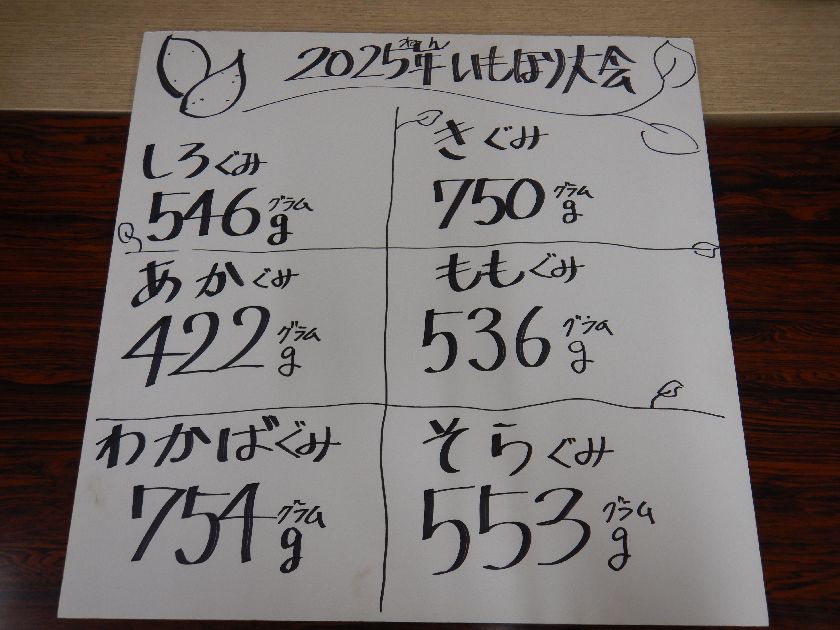 また今年度は、各クラスで最も重いものを見つけて、クラス対抗でおいもの重さ対決を行いました!2025年度優勝クラスはわかばぐみ!