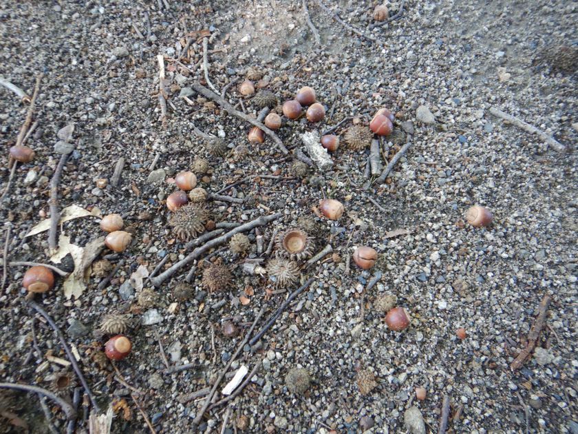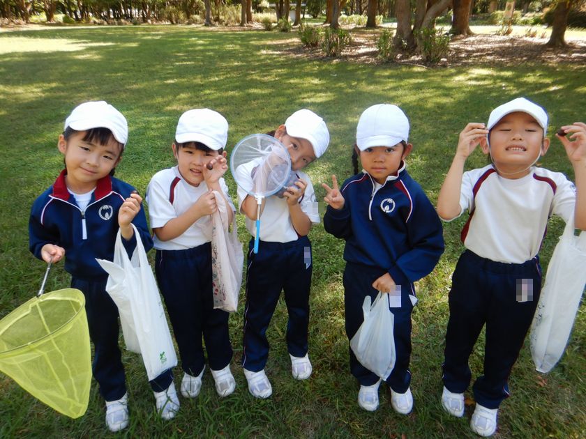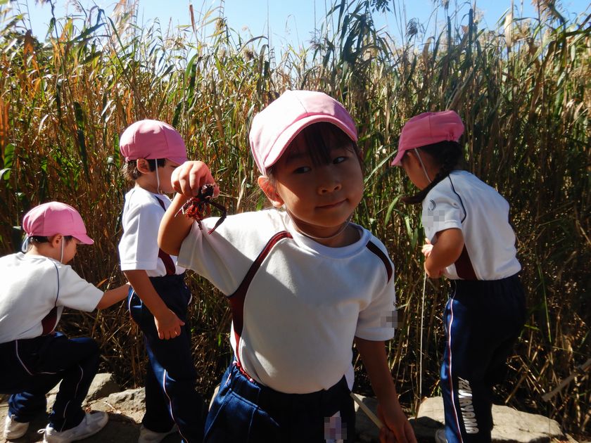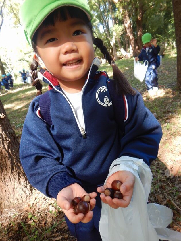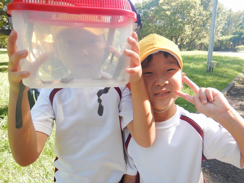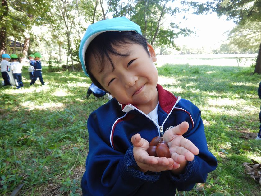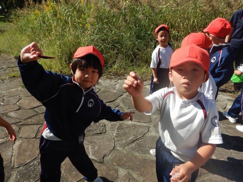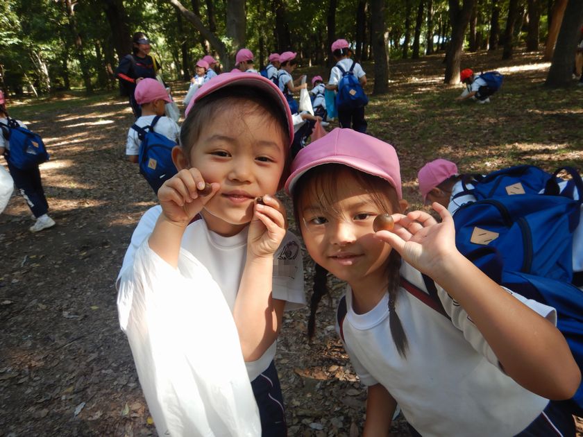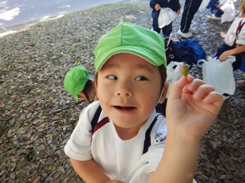 「つるつるのドングリ見つけたよ~!」「バッタ発見!!!」と