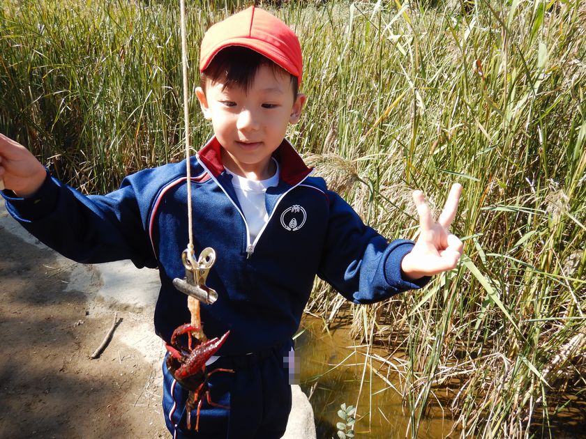 大泉緑地公園でどんぐり拾いやザリガニ釣り、虫探しなどをして