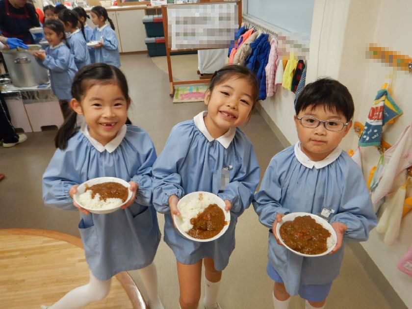 今日は待ちに待ったカレーライスクッキング!どの学年もとっても重要なお仕事!朝からみんな張り切って登園してきてくれました。
