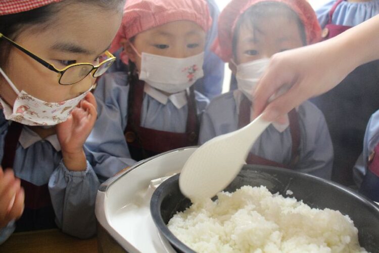 新米おにぎり 5月から大切に栽培してきたお米をやっと食べられる日がやってきました♪精米したての新米を炊いて「おにぎり」作りに挑戦です!! お米を炊こう 今日は10合のお米を炊きました!!お米を計量し研ぐ。お水…