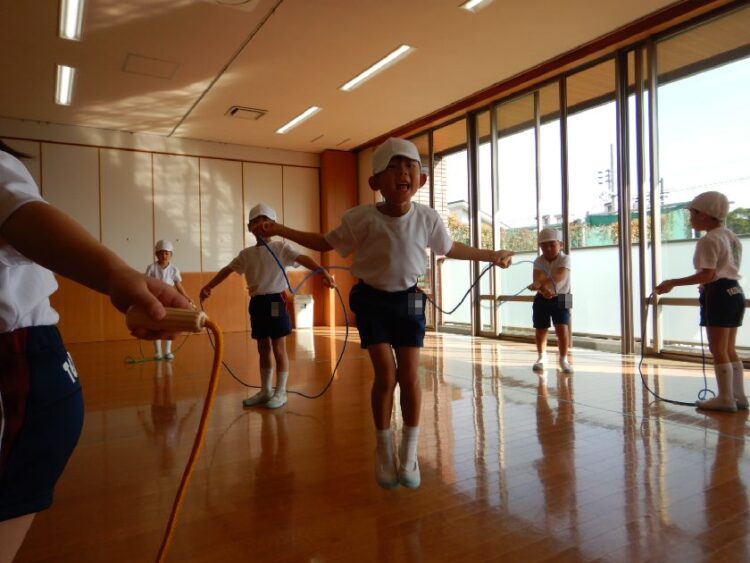 体育教室では現在縄跳びに挑戦中。子ども達はあやとびの練習や、何回跳べるかな?と数えたり難しいことに何度も挑戦し、頑張っています!「~回できたよ!!」と嬉しそうな表情を浮かべる子も。一生懸命なところ、すてき♡ 冬休みの宿題にも、縄跳び…