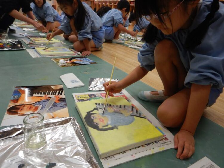 デッサン 作品展に向けて油絵に挑戦です!!世界的な有名な油絵を知るところからスタートしました。幼稚園生活の中で好きな遊び、好きな物などを題材にまずはデッサンしました。写真をよーく見ながらキャンバスに描いていくのですが観察活動で培われ…