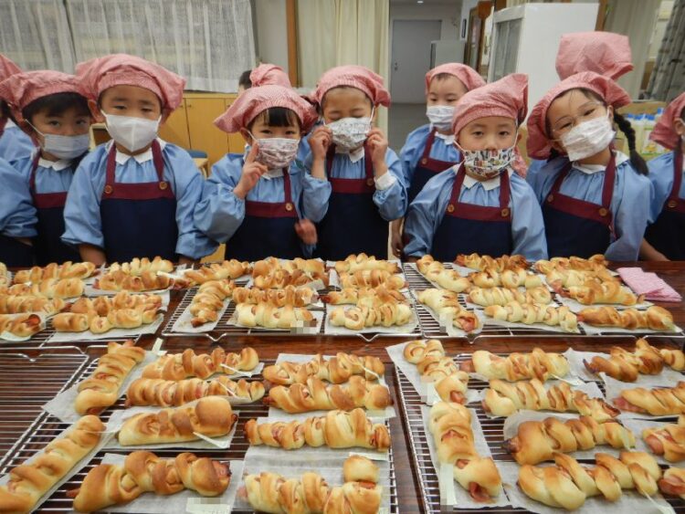 ベーコンエピパン 本日は年長組のみのスペシャルクッキングデーでした♪「エピ」とはフランス語で稲の穂という意味があるそうです。確かにベーコンエピパンは稲の穂の形をしていますよね!園長先生から作り方のレクチャーを受けて自分達で挑戦しまし…