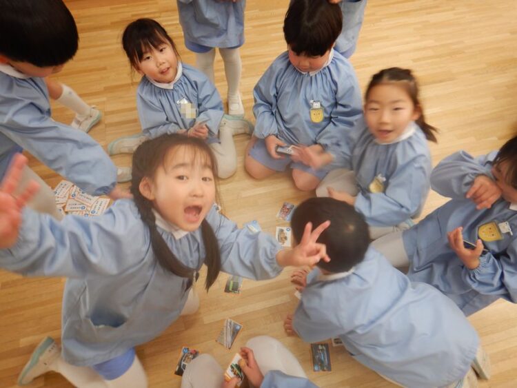 年長組ではカルタ遊びが大流行しています。何枚取れるか、日々記録更新に向けて自分との戦いです。最初は1枚だけだった子も、少しづつ取れるようになってきましたよ!「今日は〇枚取れた!」と嬉しそうに報告する子ども達でした♪ …
