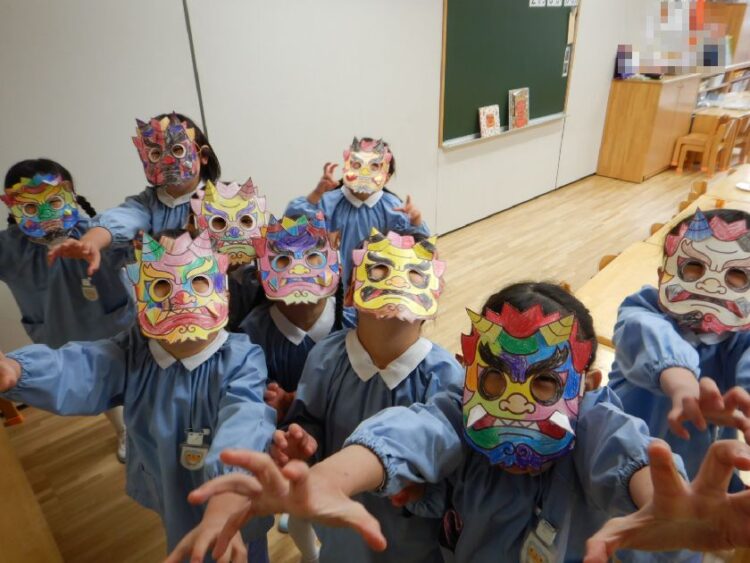 2026☆恵方巻 今年も年長組は大忙し!豆まきで鬼退治した後、恵方巻キッキングに取り組みました。自分のお昼ご飯になるのでみんな真剣に巻いていましたね♪お家で練習してきた子どももいてとっても上手でした!!担任がお手伝いする場面が少なか…