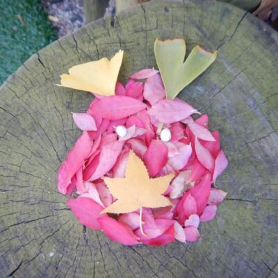 たくさんのどんぐりやまつぼっくり、木の実を使っておしゃれなリースを作っていましたよ。
