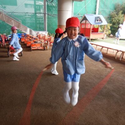 冬休みにハサミの宿題でいろいろな線や形を切ることにも挑戦した年少さん。