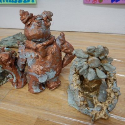 実は前回はさみで形を切った「あったかグッズ」にどんな着色をするのか混色の実験をしていたのです。
