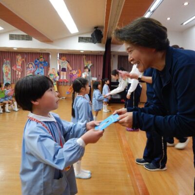 プレゼントした年長組さんからも、「とっても可愛い!ありがとう」と言ってもらったことを伝えると、ニコニコ喜んでいた子ども達です。