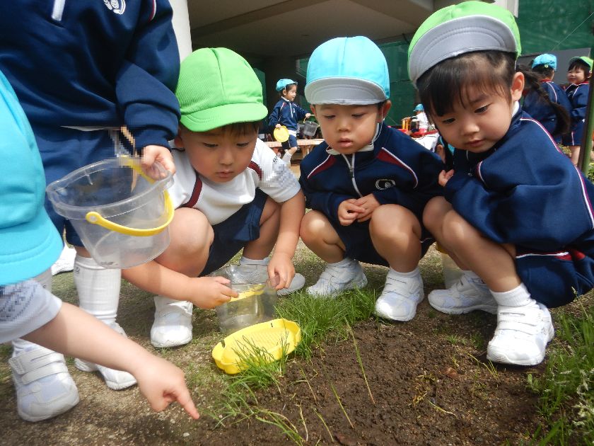 入園二日目。幼稚園にすこーしずつ慣れ、泣いていても笑顔を取り戻すことができてきました。