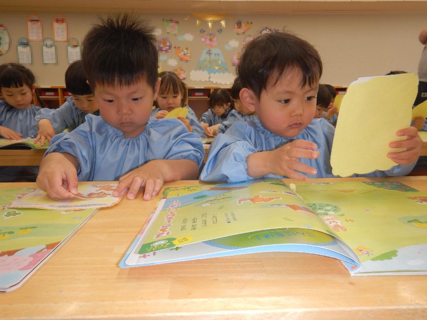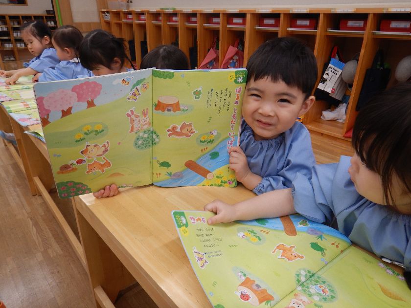 今日は「チャイルドブックあそぼ!」の絵本をみんなで読みました。