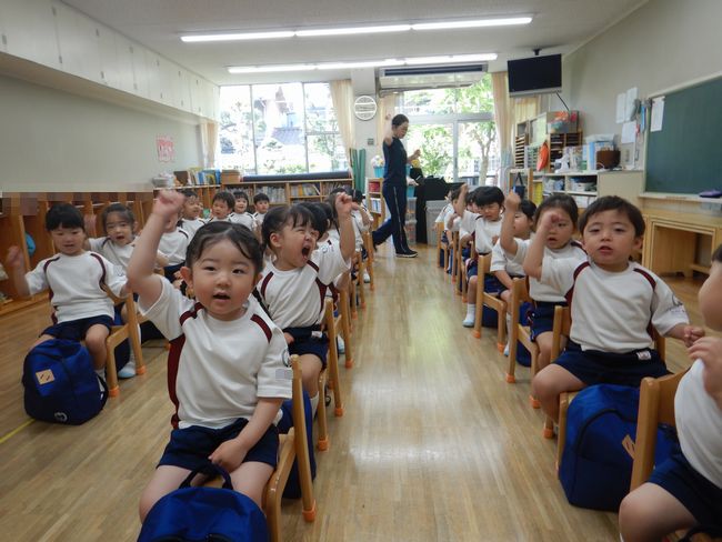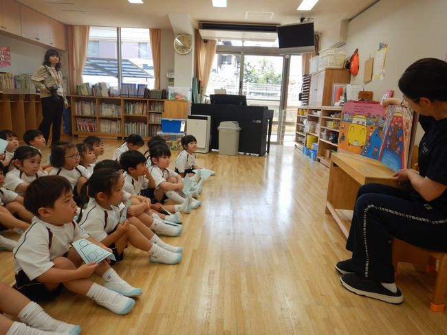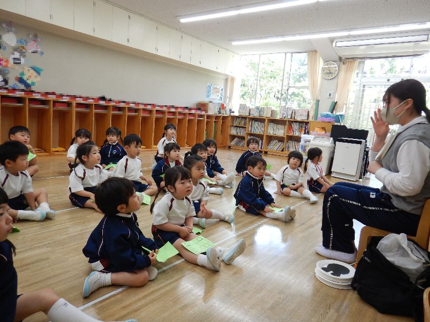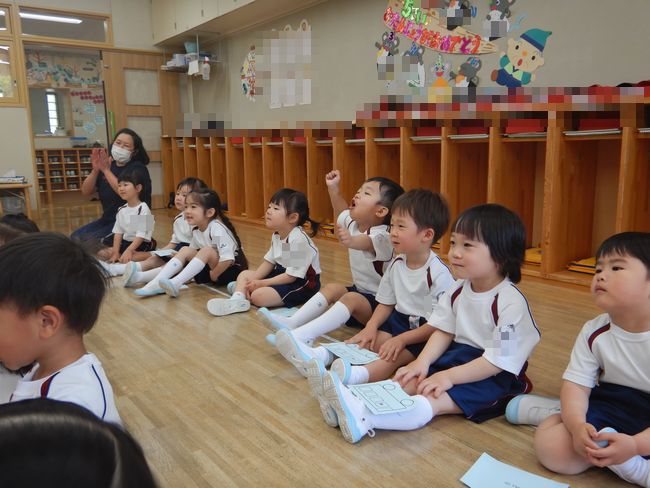 先生と一緒に絵本を楽しむ・動物シルエットクイズに挑戦する・元気に体操をする・