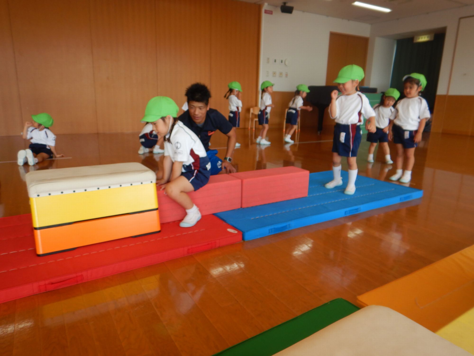 今回の保育体験は、平均台やバランスストーンなどを組み合わせサーキット遊びを楽しみたいと思います。走る・飛ぶ・くぐるなど多様な動きでバランス感覚や思考力を育みましょう。保育体験終了後は、園庭にて自由に遊んでいただきます。また、入園に関する質問などもお気軽にお尋ねください。