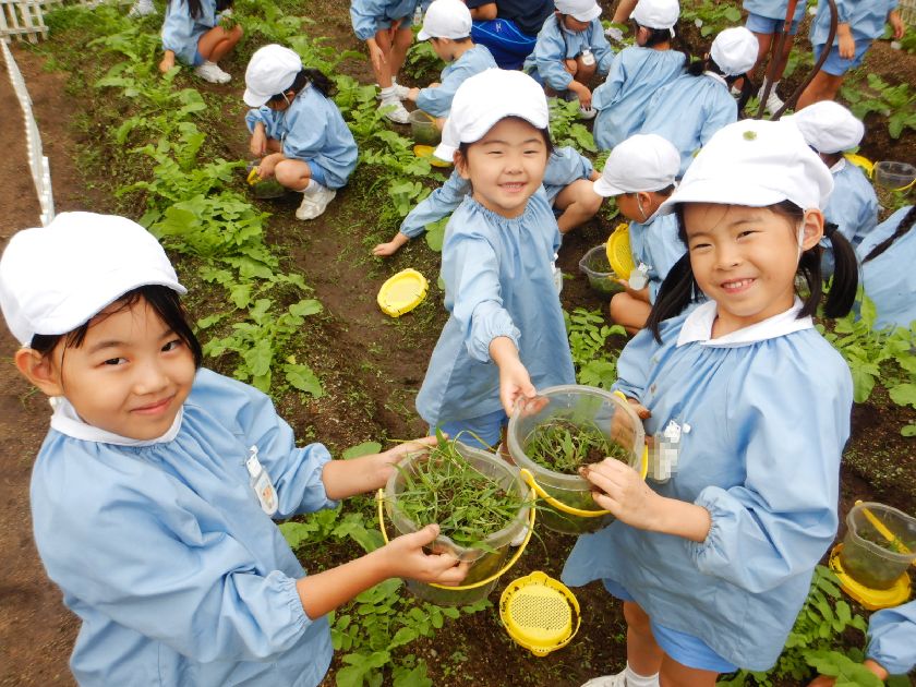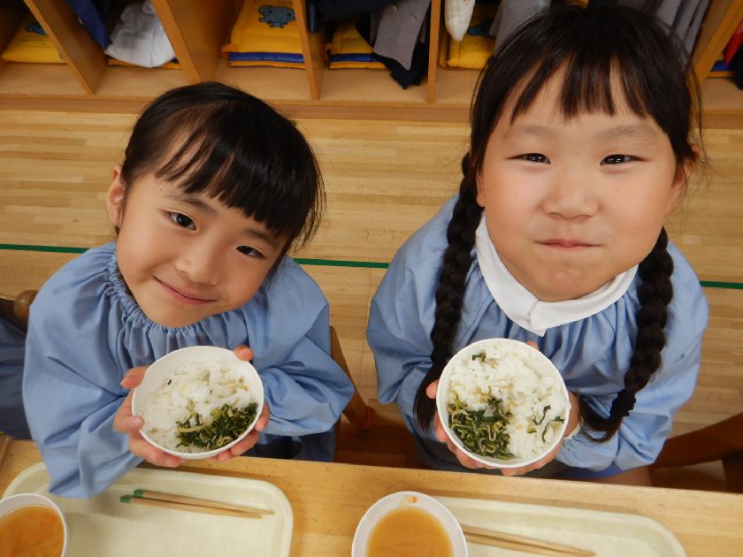 2025.10.21 大根☆間引菜 年長組 ふりかけ最高♪ 昨日、間引いた大根菜で園長先生が「ふりかけ」を作ってくださいました♪白ご飯が進むふりかけで普段よりご飯をモリモリ食べてくれました。子ども達からは大絶賛の嵐でした!! 大根のお世話 美味しいふりかけを食べた後は大根畑の雑草抜きを頑張りました!!大きな立派な大根に育つように毎日のお世話を頑張りましょうね♪