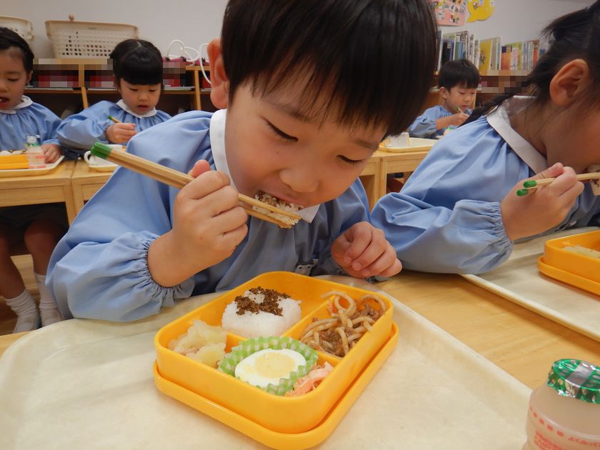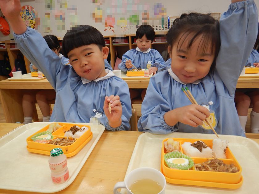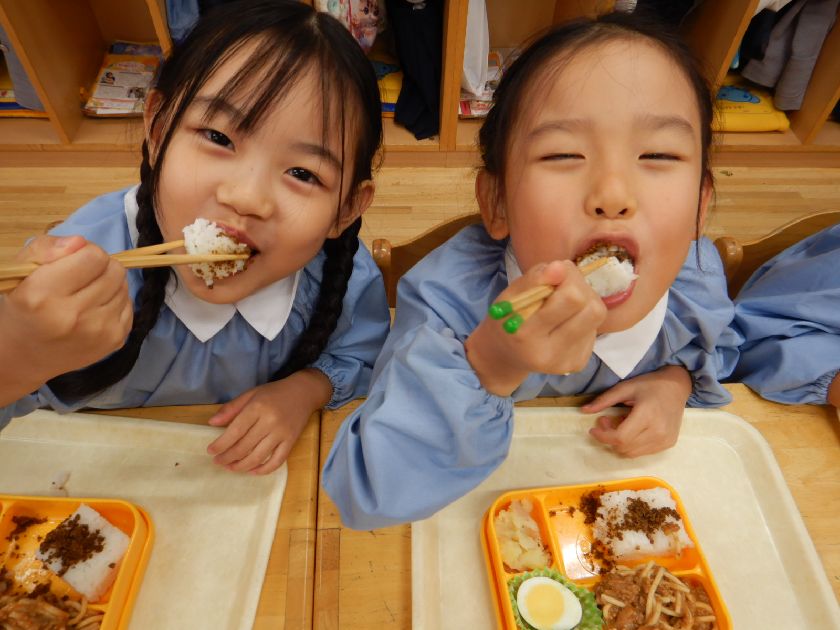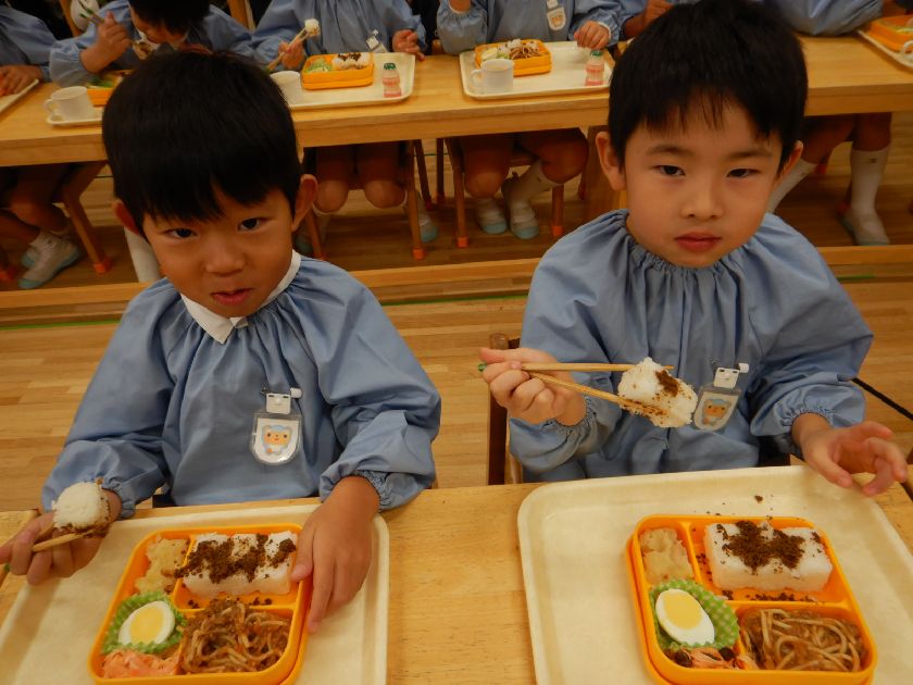 今日の給食は、園長先生の手作りふりかけをいただきました♪子ども達は「やったー!!」「おいしそう♡」と大喜び。白ご飯はあっという間になくなりました!!