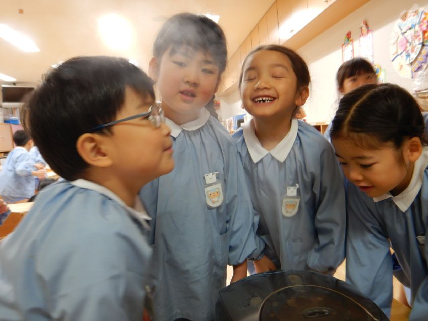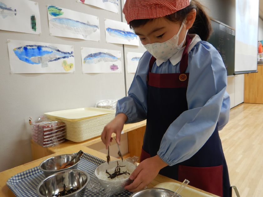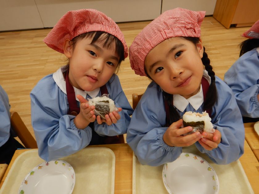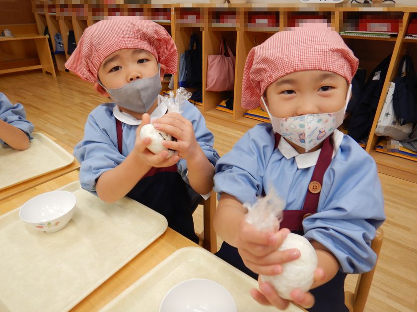 炊きあがりのお米の香りや新米の艶・粒立ちを五感をフルに使って感じましたよ!一粒一粒がふっくらしていてきれいに炊き上がりました♪具材は自分で選んで優しくぎゅっぎゅっぎゅとにぎりました。みんな上手ににぎってくれましたよ。大きな大きな新米おにぎりの出来上がり♪お味も最高でした!