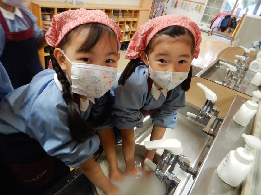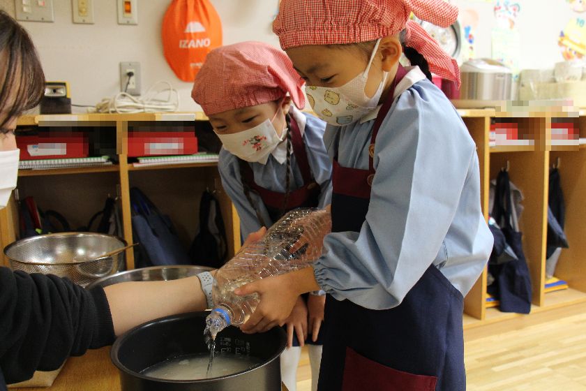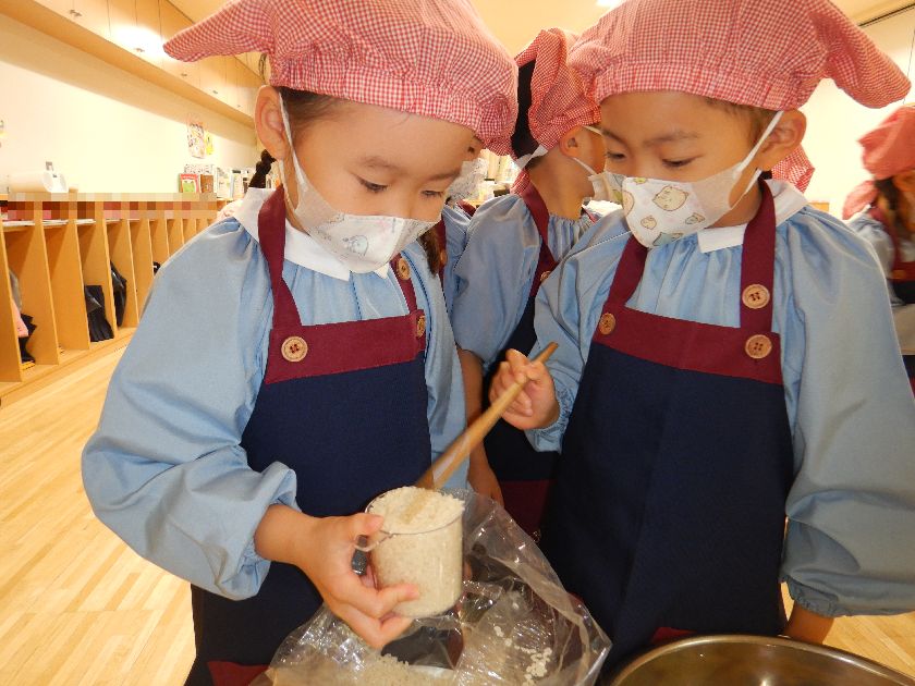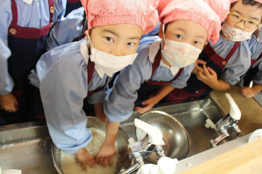 今日は10合のお米を炊きました!!お米を計量し研ぐ。お水を10の目盛りまで入れて炊飯器のスイッチON!!子ども達が全てしましたよ。