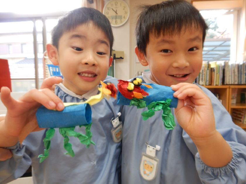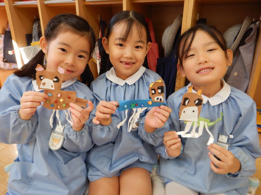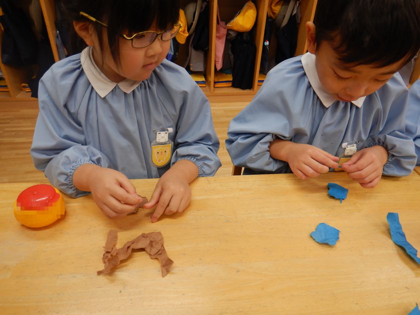 2025.12.01 制作活動 年長組 来年の干支☆午年 保育参観でしめ縄リースを作るということで来年の干支「うま」を制作しました。日本の伝統文化を象徴する紙「和紙」を使って和紙の独特の風合いを楽しみながら制作しました。和紙は丈夫で耐久性が高い特性をもっています。ねじったり、丸めたり、手でちぎったりしながら自分なりに工夫しながら素敵な「うま」が完成しました♪