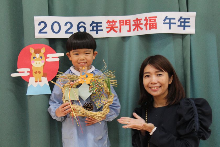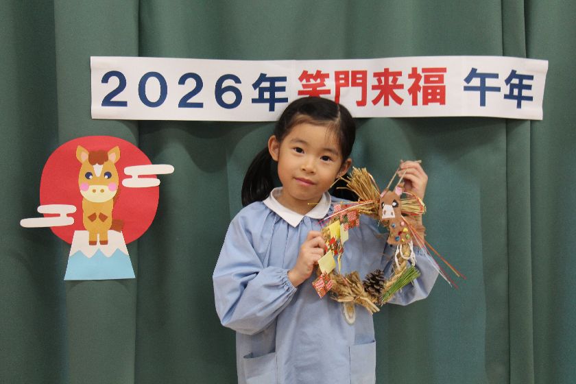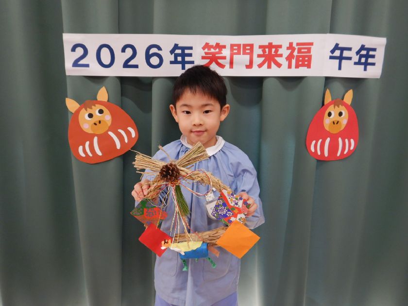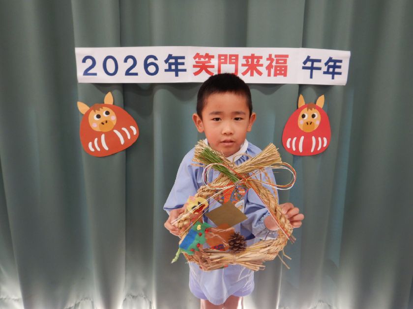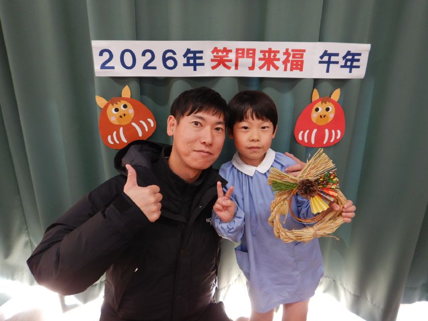 しめ縄についての知識を深め、縄を編むことを「なう」と言うことも知りましたね。日常生活での縄は右ねじりに編みますが「しめ縄」は特別な物なので左にねじります。右よりも左の方がほどけにくく強い縄ができるといわれているそうです。しめ縄にはそれだけ強い想いが込められているということですね。みんなの願いもしめ縄に込められたはずです!!