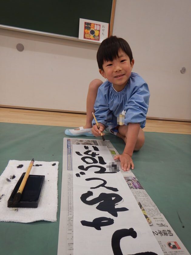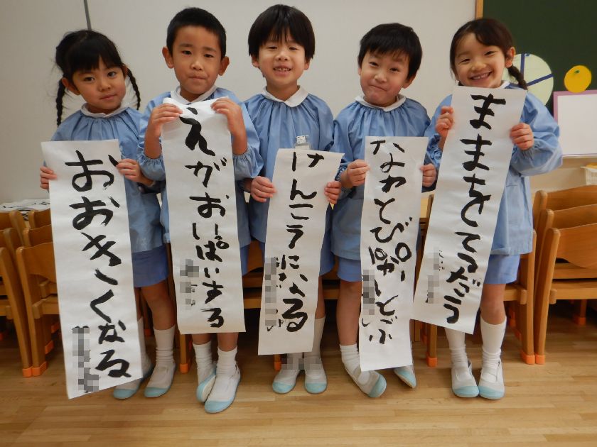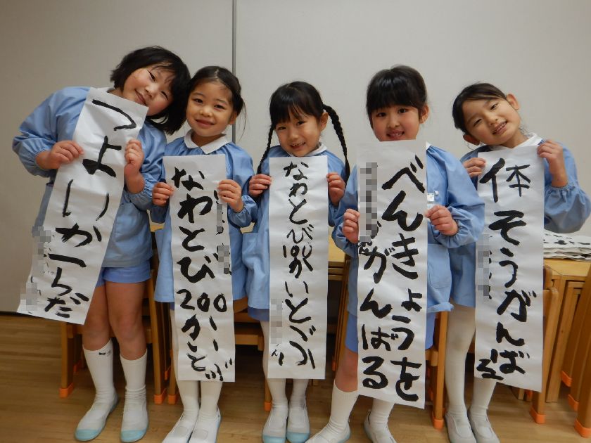 子ども達も姿勢を正し、心を穏やかにし、今年の目標を書きました!