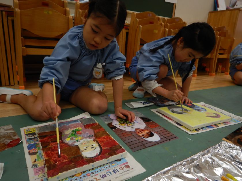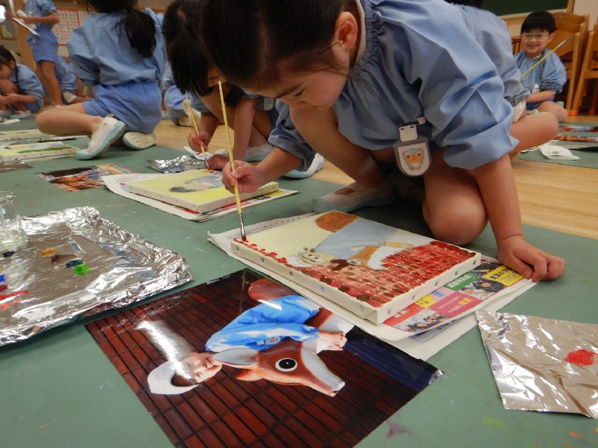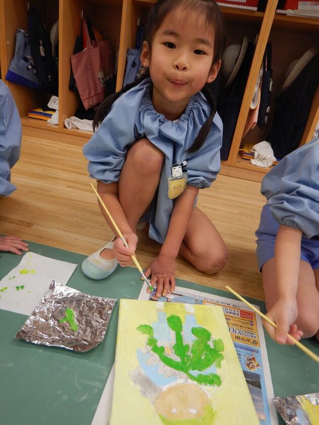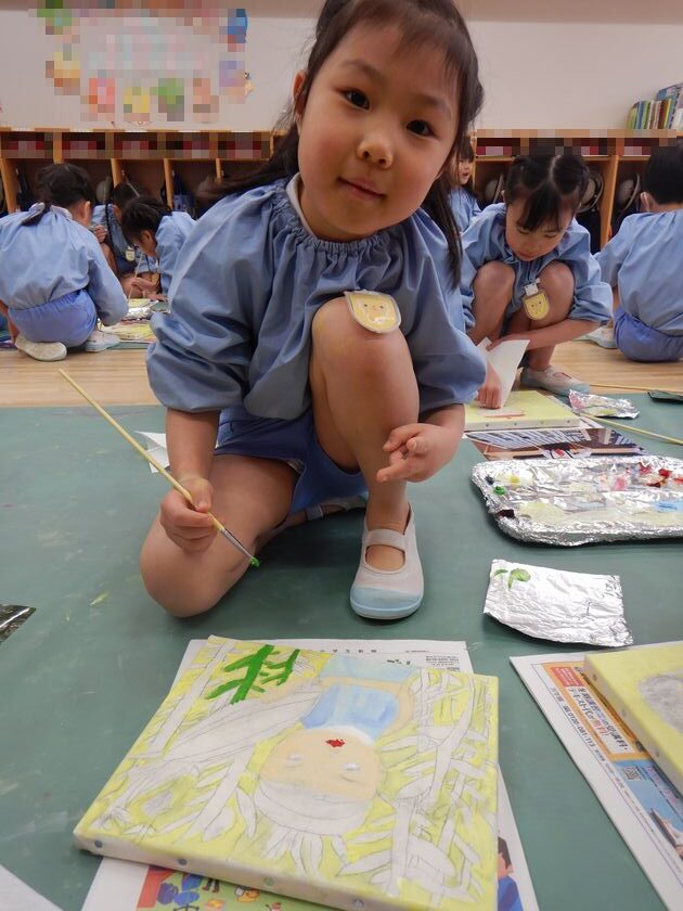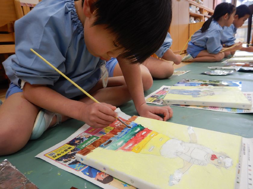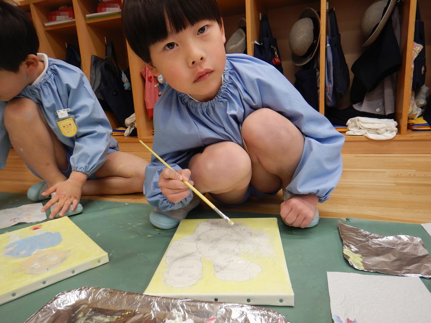 油絵の具で汚して帰る日が増えましたが子ども達頑張っています!!出来上がりが楽しみですね♪