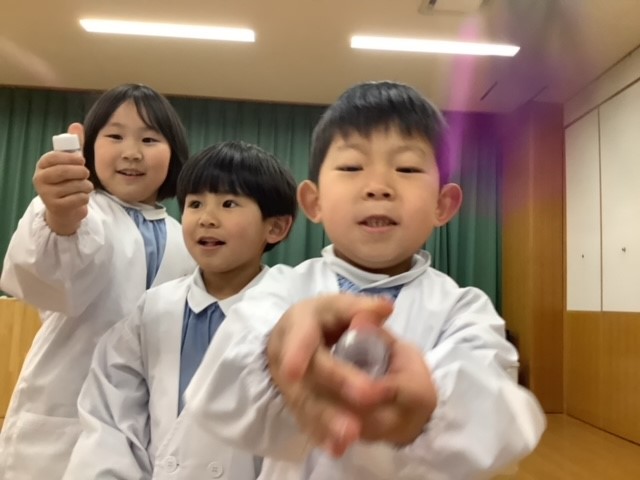 楽しかったサイエンスラボクラブの実験も今回で終わりです。いつも元気いっぱいのみんなと一緒に実験できること毎回楽しみにしていました。「ふしぎに思ったこと」や「考えたこと」などをいつもお話してくれてうれしかったです。サイエンスラボクラブは、今回で最終回ですが、まだまだみんなのまわりには「ふしぎ」がいっぱいあります。是非、これからも宝物探しのように楽しみながら、たくさんの「なぜ?」を見つけてくださいね。みんなが「科学」と「友達」のように仲良くなり、いつも身近に感じてもらえるようになることが私たちの願いです。