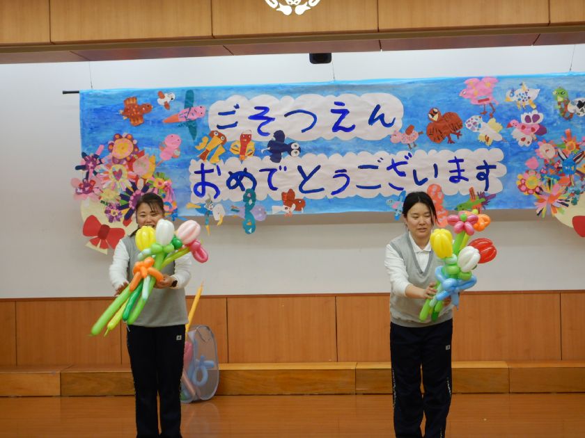 週明けにも「お祝い会たのしかった~♪」の声が沢山ありました。全力で楽しませてくれた先生方のおかげで楽しい会になりましたね♪今日はその様子をご紹介します!