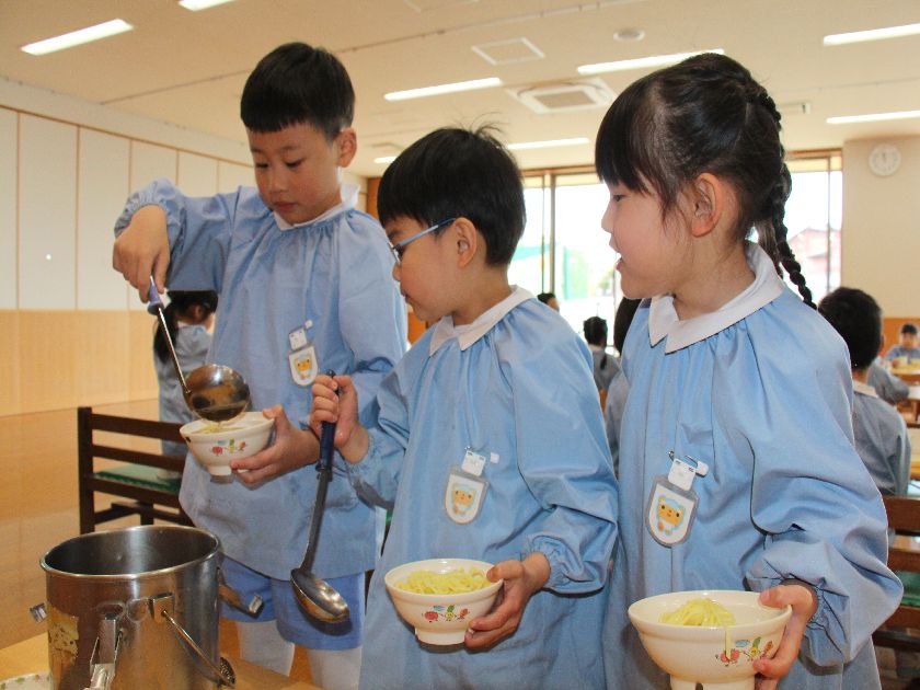 お次のトピックスは、給食タイム。