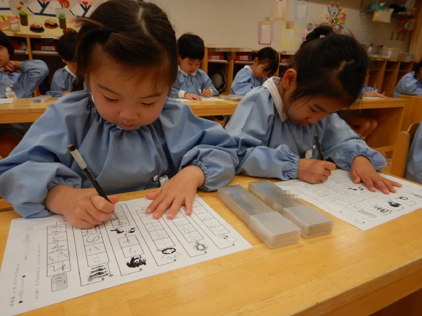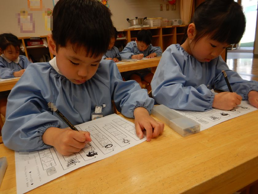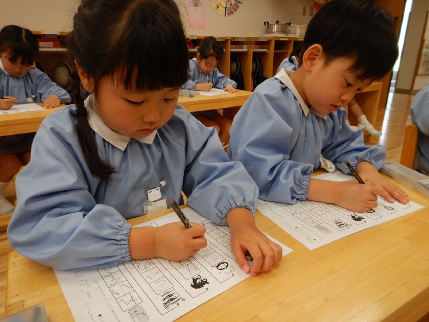 椅子の座り方や鉛筆の正しい持ち方を再確認しながら集中して取り組むことも大切にしています。
