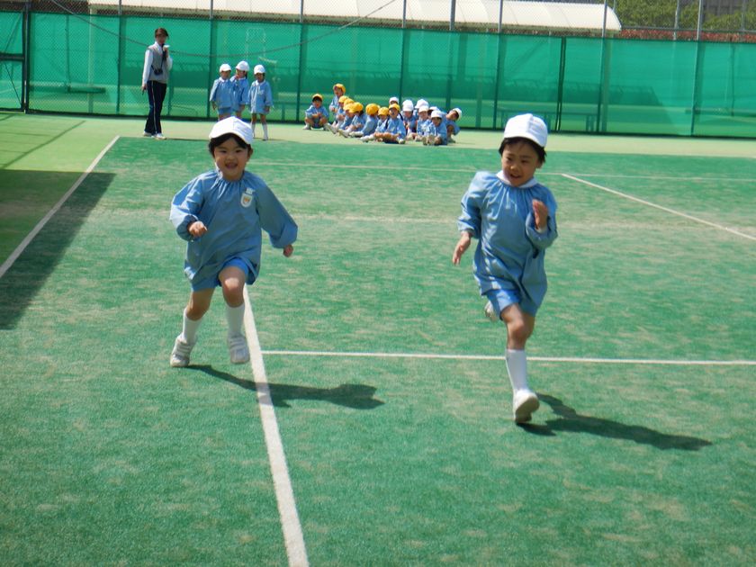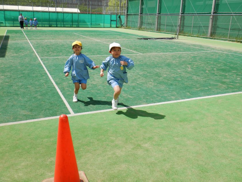 2026.04.21 25m走の測定をしました 年長組 年長組の運動会では、クラスのみんなと協力してトラックを走るリレーがあります!その前段階として今日は、25m走を計測しました。腕を大きく振り、足を速く動かし、前を向いて真っすぐ走ることをポイントにして風を切るように走っていましたよ!!かっこいい!!!楽しそうに走る年長組のみんなでした。