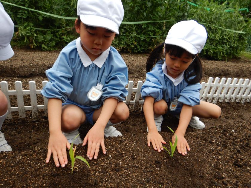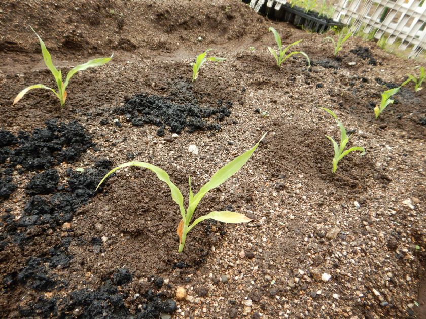 ポットで育てていたトウモロコシを広い畑にお引越しさせました。