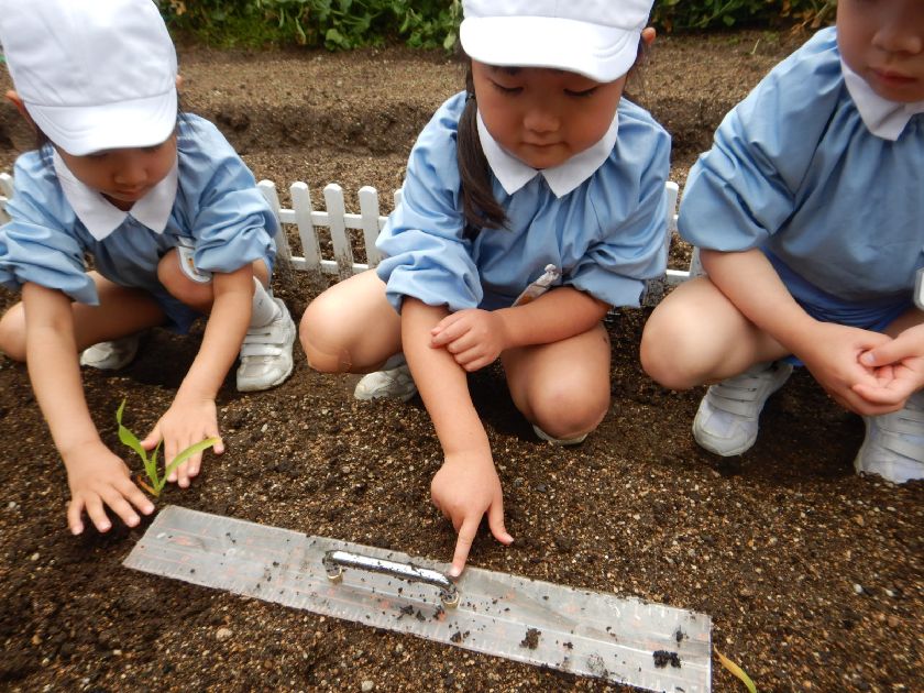 そこで、便利な道具!「ものさし」で計測出来ることを伝えて、実際に自分達で目盛りを読み、計り植え替えました。