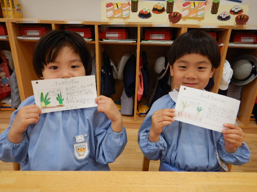 観察カードにも今日の植え替えた記録や植え替えて感じた事も記録しました。これから生長を観察しながら、合わせてカードに自分の感じた事を記入していくことも楽しんでいきましょうね♪